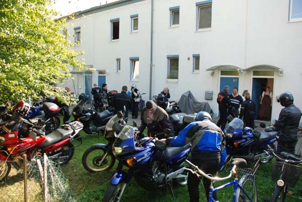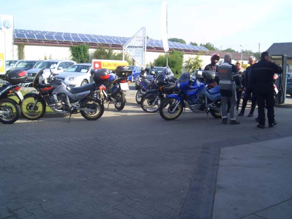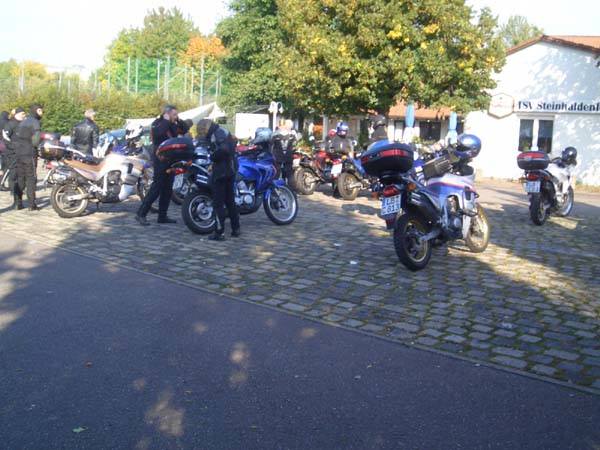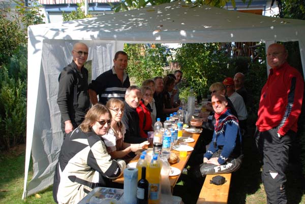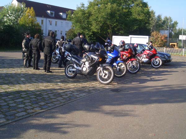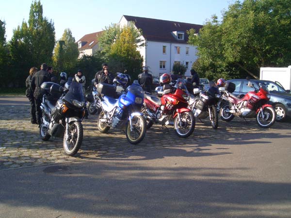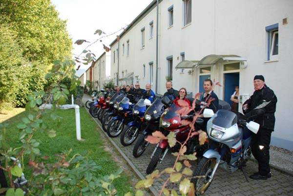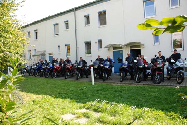 Unser Ziel dieses Jahr war mal kein landschaftliches, sondern lag in einer Großstadt. Grund: Wir wollten unseren Transalpfreund Frank zu seinem 40. Geburtstag zu Hause überraschen, was uns auch vollständig gelang. 14 Transalps vor dem Haus ist ja schon was. Dank schönem Wetter war die Tour dorthin sehr interessant. Wir fuhren kurvige und wenig befahrene Nebensträßchen, wie sie die Transalp halt so liebt. Die größte Überraschung bescherte uns eine Passstraße im Süden Heidelbergs, die wir so wohl eher im Schwarzwald gewähnt hätten.