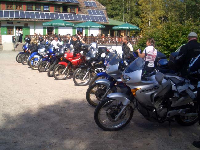 Ziel unserer diesjährigen Ausfahrt war ein Berg im Nordschwarzwald bei Gernsbach mit dem seltsamen Namen Teufelsmühle. Wir trafen uns am Glemseck bei Stuttgart, wo die vielen Transalps wieder mächtig auffielen. Das interessanteste Stück war die Strecke, die in Dobel abzweigte und über enge und engste Sträßchen nach Gaistal führte. Dort gab es etwas wohl ziemlich Einzigartiges, nämlich eine öffentlich zugelassene Flussdurchquerung. Das Wasser dort war aber nur wenige Zentimeter tief und die Fahrbahn betoniert. Wendepunkt der Tour war die Teufelsmühle, wo wir auch einkehrten.